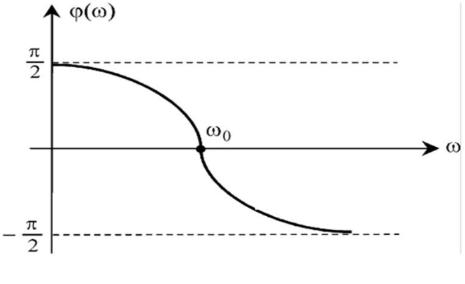 В низкочастотной части амплитуда тока определяется емкостью, и фаза тока опережает напряжение на четверть периода. В точке резонанса емкостные и индуктивные вклады в импеданс сравниваются и взаимно вычитаются, при этом разность фаз между током и напряжением источника равна нулю. После прохождения точки резонанса в высокочастотной части зависимости постепенно нарастает индуктивный вклад, и фаза тока стремится к чисто индуктивному запаздыванию относительно напряжения на четверть периода колебаний. При этом диапазон частот, на котором происходит перестройка от ёмкостного к индуктивному типу поведения фазы, соответствует ширине резонансной кривой на рис. 2 (б).